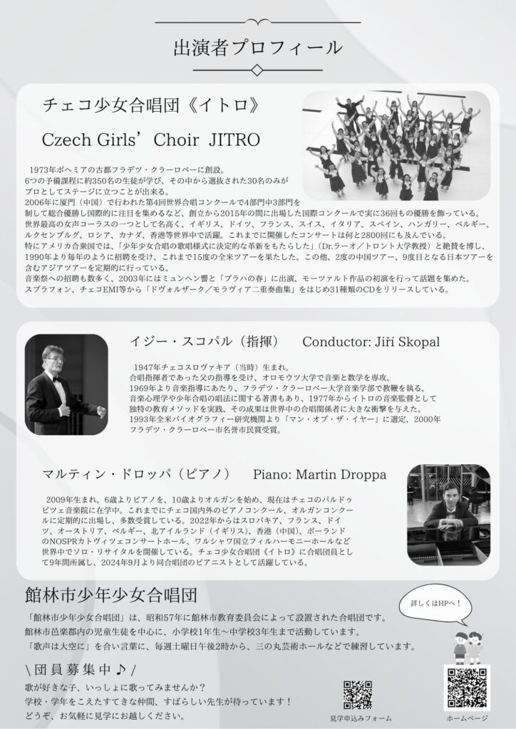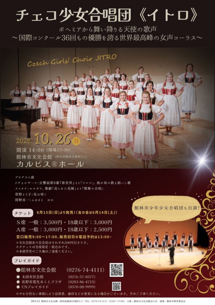 館林文化会館友の会では世界最高峰の少女合唱団と言われるチェコ少女合唱団「イトロ」を招聘しコンサートを開催することとなりました。